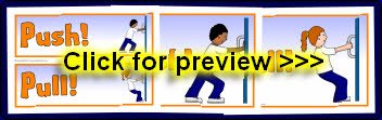 Printable door signs and labels with the words ‘Push’ and ‘Pull’ and simple pictures.