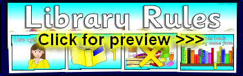 A printable banner and posters for your library rules display.