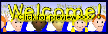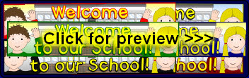 A set of colourful ‘Welcome to Our School’ banners with children in a variety of uniform colours.