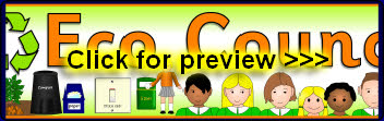 Colour printable banners with the text ‘Green School’ and ‘Green School Committee’.