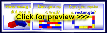 A set of prompt cards where children can make and continue the repeating patterns using building bricks. Includes black and white versions to colour yourself as appropriate.