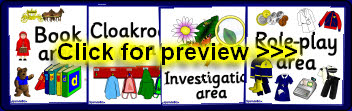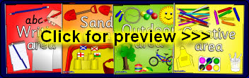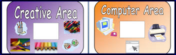 Signs for areas in the foundation stage. Stick a picture of children in your area in the white section of the sign.