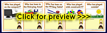 A set of A4 sheets to print and laminate where children can sign their name when they have carried out activities during the day. A good way of encouraging children with their name writing, as well as keeping a record of who has been where.