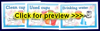 Three simple posters for your sink area for ‘Clean cups’ and ‘Used cups’.