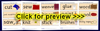 A useful set of 24 words linked to design and technology. Can be used for classroom word banks linked to D&T or for labelling classroom displays. Most of the words have accompanying images.