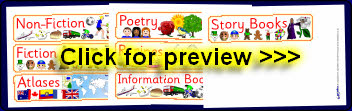 Printable labels for your book shelves. Includes book band colours and labels for group readers, home readers and big books.
