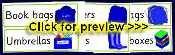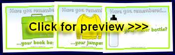 A set of printable signs for your cloakroom to remind children which things they should take home with them.