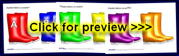 A set of coloured wellies with capital letters A-Z. Ideal for use in your cloakroom or outdoor area for helping children to quickly locate their boots.
