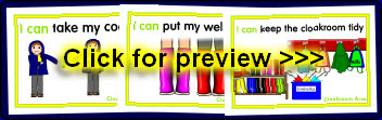 A useful group of signs with ‘I can...’ statements for use in your cloakroom area. Includes ‘I can put my coat on/off’, ‘I can fasten my coat’, ‘I can keep the cloakroom tidy’, ‘I can hang my coat up’ and more.