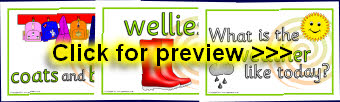 A set of posters to remind the children of what items of clothing they may need to wear when playing in the rain.