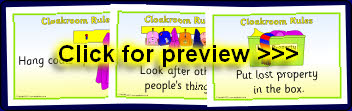 A set of posters with rules for your cloakroom area. Also includes an editable poster for you to type your own set of rules.