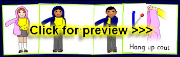 Simple printable cue cards for use with children with SEN to remind them to put their coat on/off and hang it up after going outside.