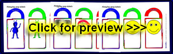 A larger sized group of colourful editable peg labels that can be hung on pupils’ pegs rather than stuck. Ideal for settings where pegs are only temporary and are packed away after each session.
