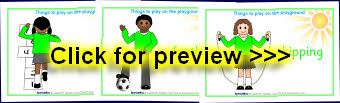 A simple set of A4 printable posters showing games and things that children can do on the playground.