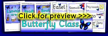 A useful set of signs and labels for your classroom featuring a butterfly theme. Includes signs for different learning areas, drawer labels, book labels, and editable templates.
