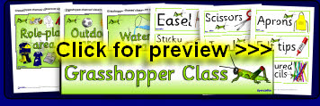 A useful set of signs and labels for your classroom featuring a grasshopper theme. Includes a class banner, signs for different learning areas, resource labels, editable book labels, and other editable templates.