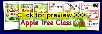 A useful set of signs and labels for your classroom featuring a apple tree theme. Includes a class banner, signs for different learning areas, resource labels, editable book labels, and other editable templates.