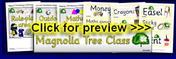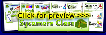 A useful set of signs and labels for your classroom featuring a sycamore tree theme. Includes a class banner, signs for different learning areas, resource labels, editable book labels, and other editable templates.