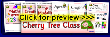 A useful set of signs and labels for your classroom featuring a cherry tree theme. Includes a class banner, signs for different learning areas, resource labels, editable book labels, and other editable templates.