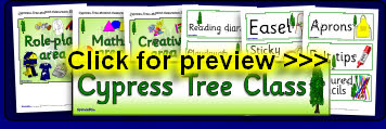 A useful set of signs and labels for your classroom featuring a cypress tree theme. Includes a class banner, signs for different learning areas, resource labels, editable book labels, and other editable templates.