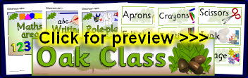 A useful set of signs and labels for your classroom featuring an oak tree theme. Includes a class banner, signs for different learning areas, resource labels, editable book labels, and other editable templates.