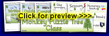 A useful set of signs and labels for your classroom featuring a monkey puzzle tree theme. Includes a class banner, signs for different learning areas, resource labels, editable book labels, and other editable templates.