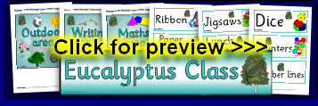 A useful set of signs and labels for your classroom featuring a yew tree theme. Includes a class banner, signs for different learning areas, resource labels, editable book labels, and other editable templates.
