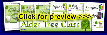 A useful set of signs and labels for your classroom featuring an alder tree theme. Includes a class banner, signs for different learning areas, resource labels, editable book labels, and other editable templates.