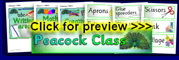 A useful set of signs and labels for your classroom featuring a peacock theme. Includes a class banner, signs for different learning areas, resource labels, editable book labels, and other editable templates.