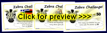 A fantastic set of resources to help you set up a stimulating ‘Challenge Area’ in your classroom. The pack includes a selection of over 65 different challenge posters linked to Literacy, Numeracy and general activities all with a zebra theme. Also includes an editable challenge poster.