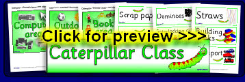 A fantastic set of signs and labels for your classroom featuring a caterpillar theme. Includes signs for different learning areas, drawer labels, book labels, and editable templates.