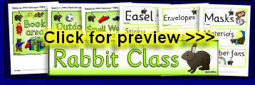 A fantastic set of signs and labels for your classroom featuring a rabbit theme. Includes a class banner, signs for different learning areas, resource labels, editable book labels, and other editable templates.