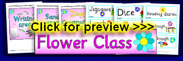 A fantastic set of signs and labels for your classroom featuring a flower theme. Includes a class banner, signs for different learning areas, resource labels, editable book labels, and other editable templates.