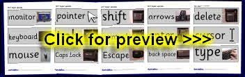 A set of 21 words with accompanying pictures linked to ICT (computers).