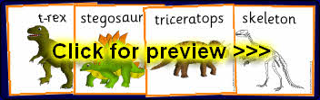 A set of printable cards featuring various dinosaurs and dino-related pictures. Each card is 11cm x 11cm in size for use with a Pixie programmable robot.
