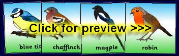 Multi-use printable cards featuring a selection of garden birds. Each card is 11cm by 11cm - ideal for use with a Pixie programmable robot.