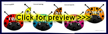 Colour words on different coloured ladybirds.