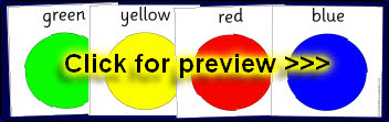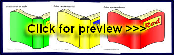 Colour words presented on different coloured books. Useful for topics on colour, or in your reading area or library as signs for books in different bands/levels.