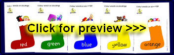 9 printable sheets with different coloured stockings filled with toys and presents. Each stocking has the appropriate colour-word - perfect for displays!