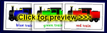 A set of A4-sized printable posters with trains in different colours.
