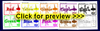A set of simple colouring pages where children colour the objects in the specified colour.