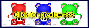 Colour words presented on different coloured teddy bears.