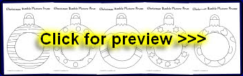 Christmas bauble colour-in photo frames (Ref: SB8963) A set of colouring pictures of patterned Christmas tree baubles with space for the child’s photograph.