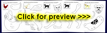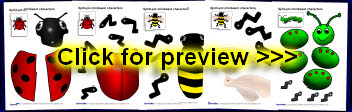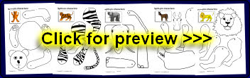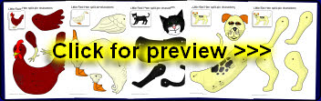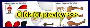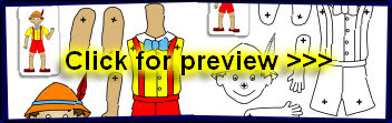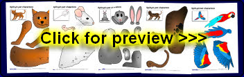 A group of body part sets which can be assembled into split-pin characters with moving parts. Children cut out the body parts and use split-pins to join together at the appropriate places.