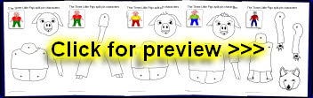 A group of body part sets that can be assembled into Three Little Pigs and Big Bad Wolf characters.