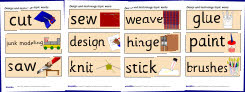 A printable word mat featuring words and pictures useful for design and construction activities.