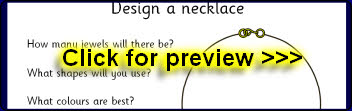 4 printable templates for children to design their own jewellery. On the first sheet they can add their own shaped jewels to the necklace, and the other sheets are blank for their own designs.