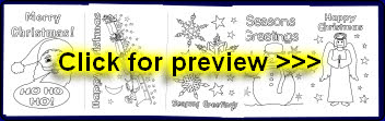 A set of 8 simple Christmas card designs that can be printed on card for children to colour and decorate with glitter, sequins, stars etc.