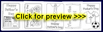 A set of simple Father’s Day card designs that can be printed on card for children to colour and decorate.