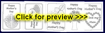 A set of simple Mother’s Day card designs that can be printed on card for children to colour and decorate.